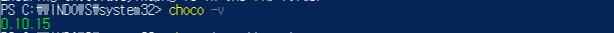 설치 확인을 우해 'choco -v' 입력하여 버전을 확인합니다.